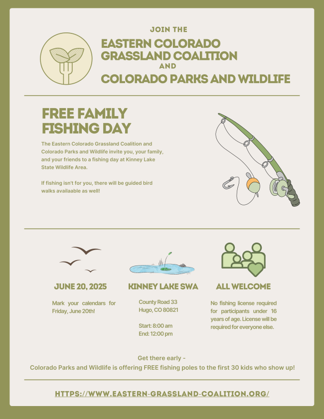 Kinney Lake County Road 33, Hugohttps://cpw.state.co.us/state-wildlife-areas/kinney-lake-swa The Eastern Colorado Grassland Coalition and Colorado Parks and Wildlife invite you, your family and your friends to a fishing day at Kinney Lake State Wildlife Area. If fishing...